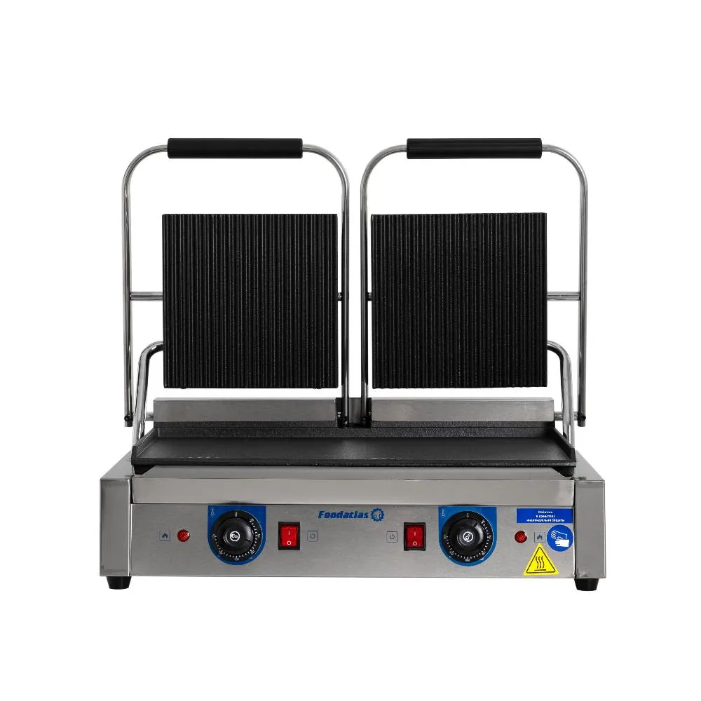 - Двойные нагревательные плиты – независимая регулировка температуры (50-300°C) поверхностей